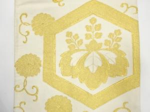 JAPANESE KIMONO / ANTIQUE FUKURO OBI / SILK / WOVEN PAULOWNIA & KIKU