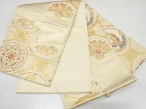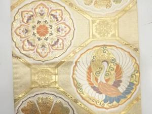 JAPANESE KIMONO / ANTIQUE FUKURO OBI / SILK / WOVEN SHOKKO & FLORAL CREST & CRANES
