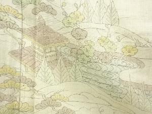 生紬 庭園風景模様訪問着