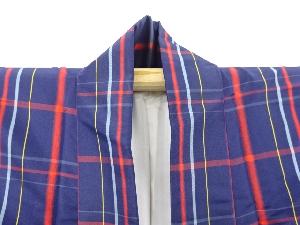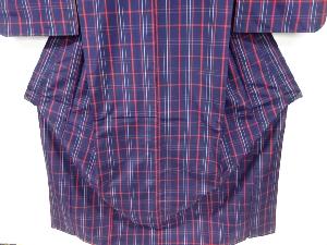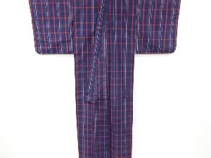 未使用品 格子織り出し米沢紬着物