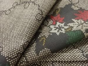 大特価品 未使用品 雪輪に草花模様織り出し本場泥大島紬着物(5マルキ)