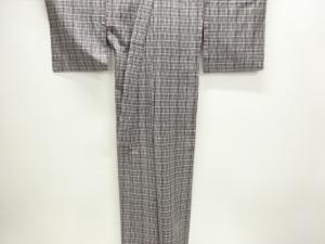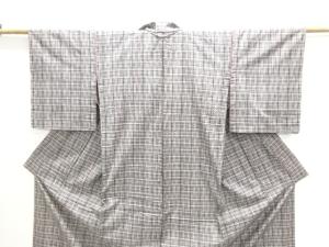 格子模様織出し手織り紬単衣着物
