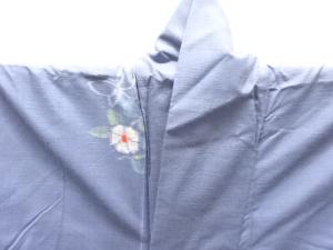 抽象椿に蝶模様織り出し手織り節紬着物