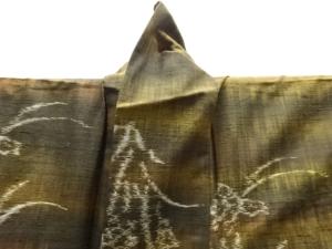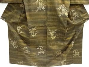 草花模様織り出し手織り紬単衣着物