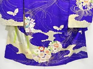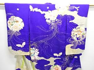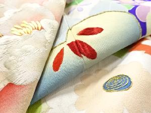 アンティーク 錦紗花薬玉に蝶模様刺繍五つ紋着物