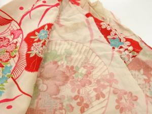 アンティーク 錦紗団扇に草花模様はぎれ
