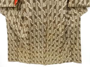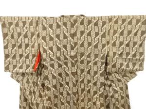 アンティーク 変わり縞に抽象模様織り出し本場泥大島紬着物