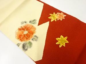 アンティーク 縮緬地菊楓模様開き名古屋帯(額縁仕立て)