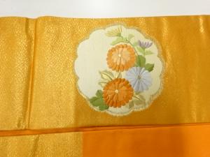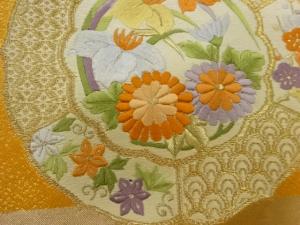 アンティーク 絵皿に草花模様刺繍名古屋帯