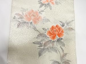 アンティーク 手描き牡丹模様刺繍名古屋帯