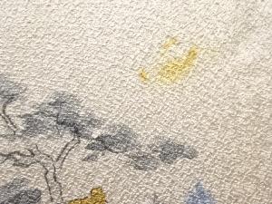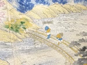 アンティーク 手描き寺塔風景模様着物