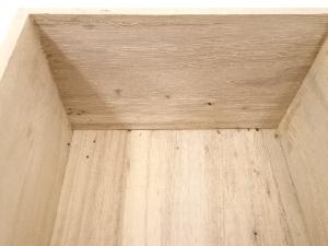木箱の底に隙間があり、側面にシミがあります。