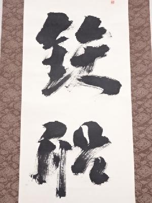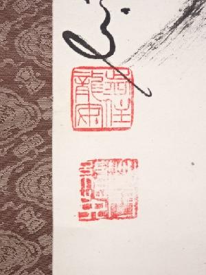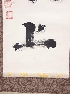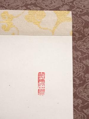 • 龍安寺松倉紹英筆 「鉄線浮水上」 肉筆紙本掛軸(保護箱)