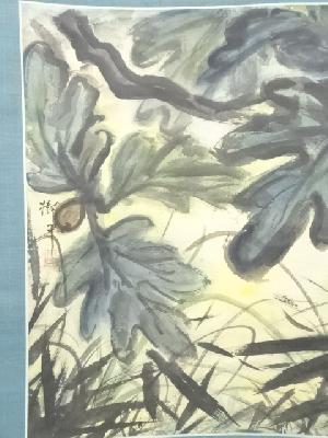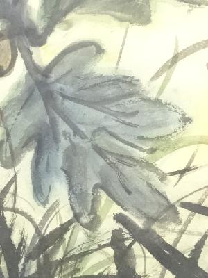 要樹平筆 叢苑晩夏 肉筆紙本掛軸(共箱)