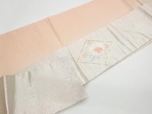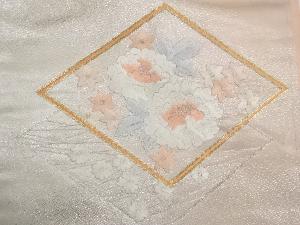 リサイクル 菱に花々模様刺繍名古屋帯