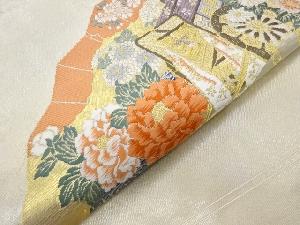リサイクル 檜扇に御所車・花々模様織出し名古屋帯
