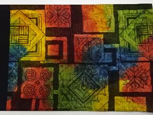 • リサイクル 色紙に抽象模様織出し袋帯