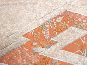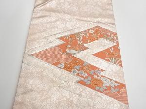 リサイクル 銀駒刺繍松皮菱に花々・雲・鳥模様名古屋帯
