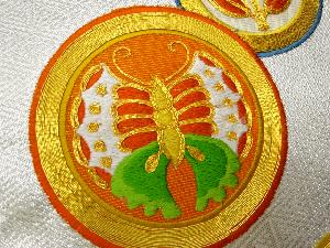 リサイクル 金駒刺繍丸に蝶・桐・橘模様名古屋帯