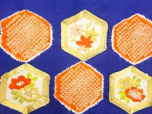 リサイクル 絞り金駒刺繍亀甲に椿・松・紅葉模様名古屋帯