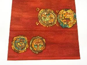 リサイクル 抽象草花に動物模様名古屋帯