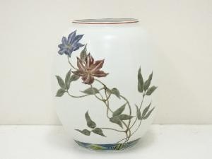 影山明志造 色絵鉄線紋面取壷(共箱)