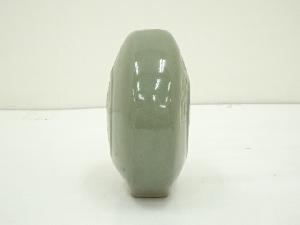 瑞芝焼 六代 阪上重次郎造 青瓷葵紋花瓶(共箱)