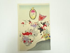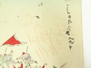 明治期 楊洲周延 幼童軍人遊び 3枚続 手摺木版画