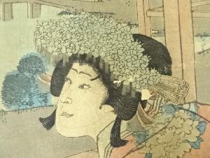 明治期 豊原国周 中村福助の息女雪姫 手摺木版画