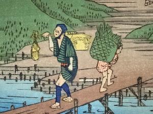 歌川広重・渓斎英泉 木曽街道六十九次 八幡 手摺浮世絵木版画