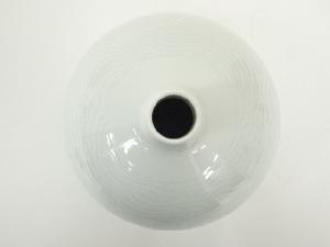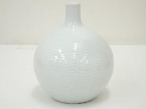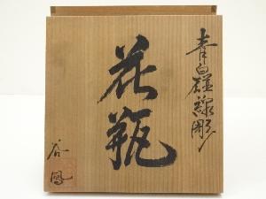 宮崎谷男(谷鳳)造 青磁線彫花瓶(共箱)