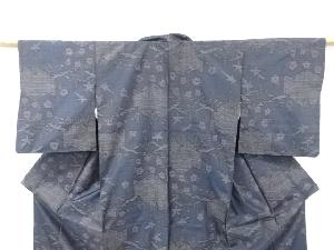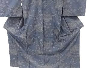 流水に梅・笹模様織り出し本場泥大島紬着物