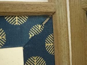 全体に焼けやシミ、縁の布部分に剥がれがあります。