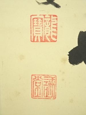 本紙と表具両面に全体的にシミがあります。
