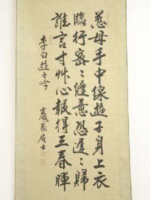 中国 巌前居士筆 孟郊 遊子吟 肉筆紙本掛軸