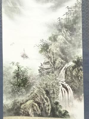作家物 水墨山水 肉筆紙本掛軸