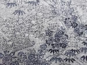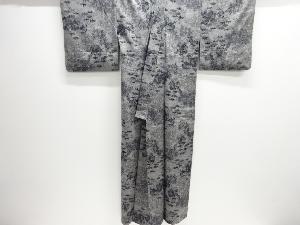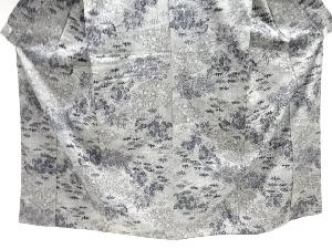 草花に灯籠模様織出し手織り真綿紬着物