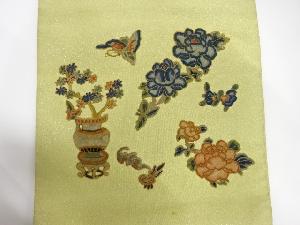アンティーク 綴れ 相良刺繍 牡丹に蝶・花瓶模様名古屋帯(着用可)