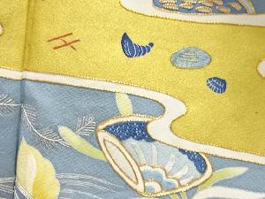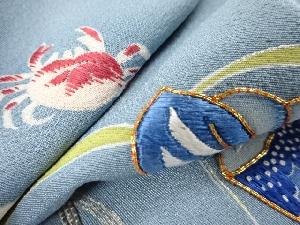 大正ロマン 貝にカニ模様刺繍五ツ紋着物