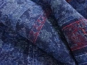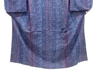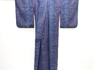 • 縞に花更紗模様織り出し手織り真綿小千谷紬単衣着物