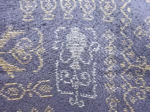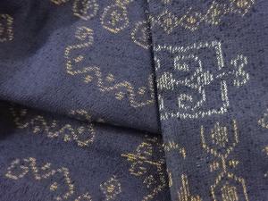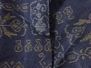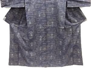 アンティーク 抽象壷に草花模様織り出し本場薩摩大島紬単衣着物