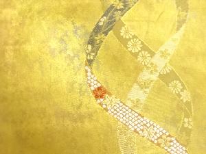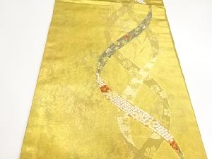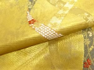 引箔鬘帯に紅葉・花々模様織出し開き名古屋帯(額縁仕立て)