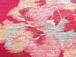 手織り真綿紬 花模様織り出し 名古屋帯