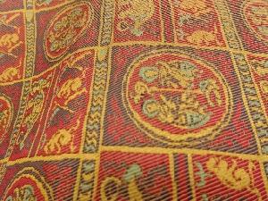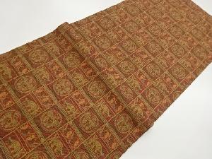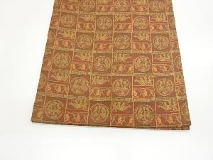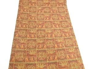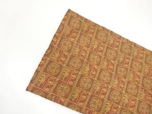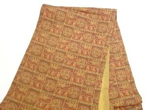 格子に丸文・人物模様開き名古屋帯(額縁仕立て)