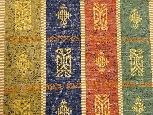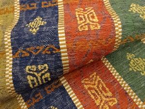 縞に幾何学模様織出し名古屋帯