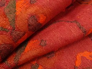 アンティーク 手織り真綿紬 華紋に花更紗模様織り出し 名古屋帯地反物