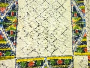 市松に抽象模様織り出し十日町紬着物