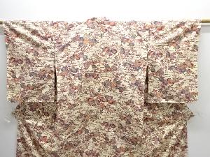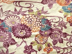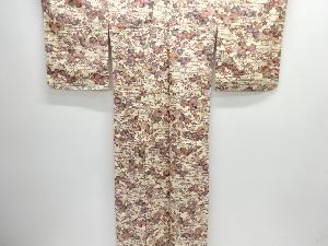 未使用品 観世水に草花模様上代紬着物