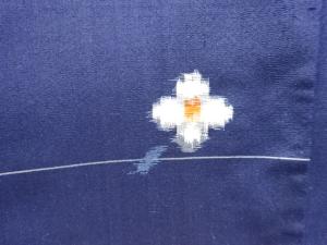 横段に花模様織り出し手織り紬着物アンサンブル