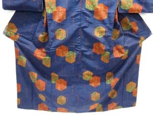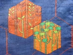 アンティーク 亀甲に枝葉模様織り出し手織り紬着物